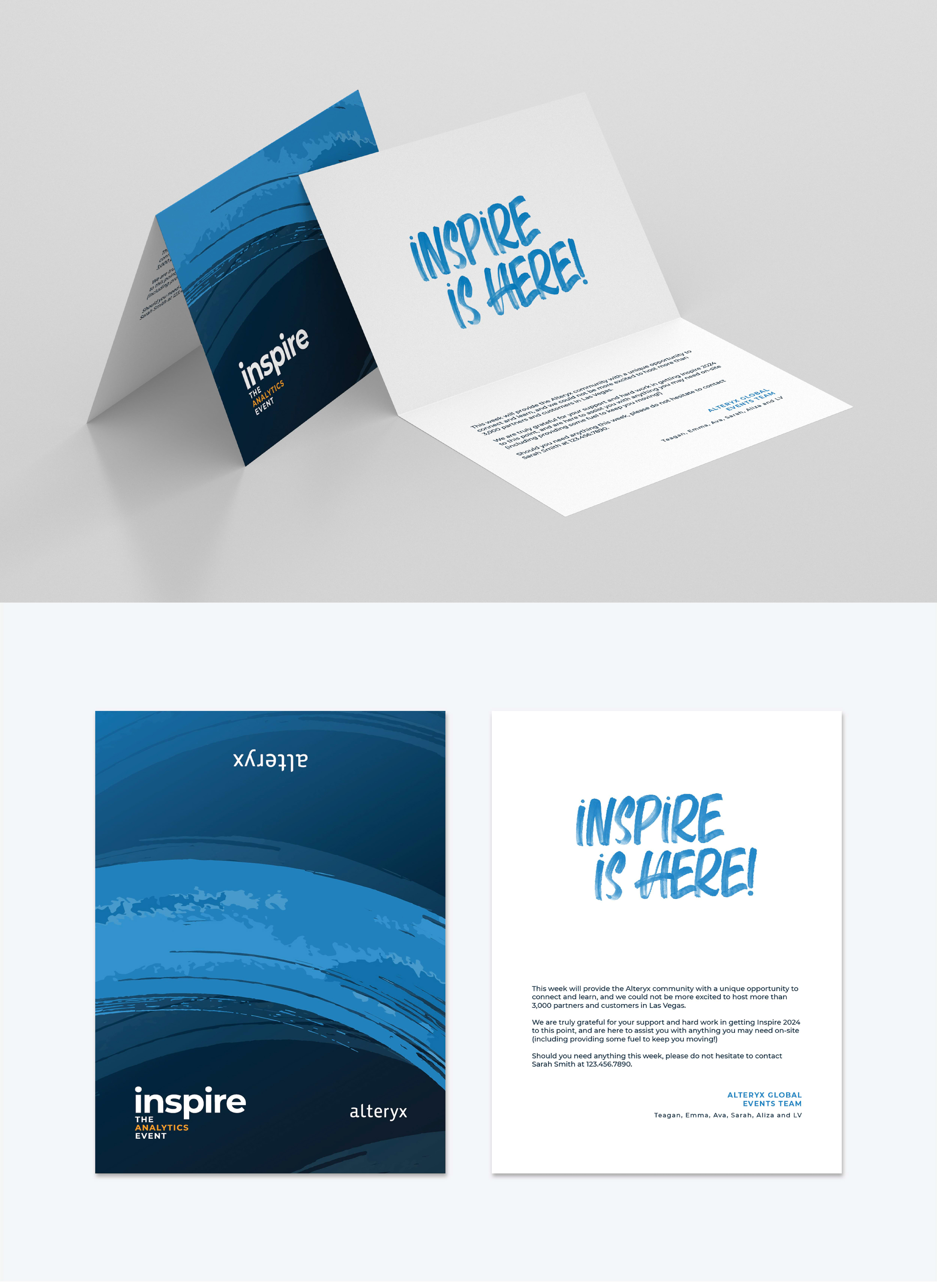 I created a handful of assets used at Alteryx’s Inspire event in 2024. These designs are for a collection of printed assets used throughout the Inspire experience.