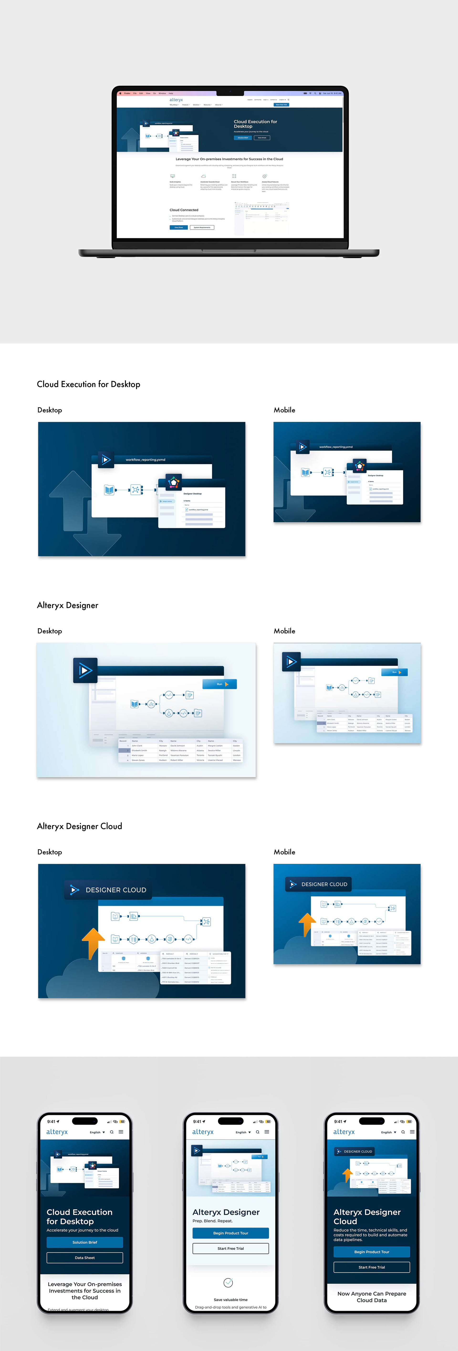 I handled the creation of three different renders representing product interfaces for three different product pages on Alteryx.com.